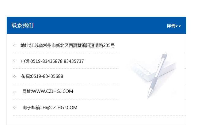 地址:常州市新北區(qū)友邦商務(wù)大廈1幢16、17層  電話:0519-85101652  傳真:0519-85112595  郵編:213022  網(wǎng)址:www_cz-jiayue_cn.hahzmbajy.com  郵箱:xiajifengaa@163.com